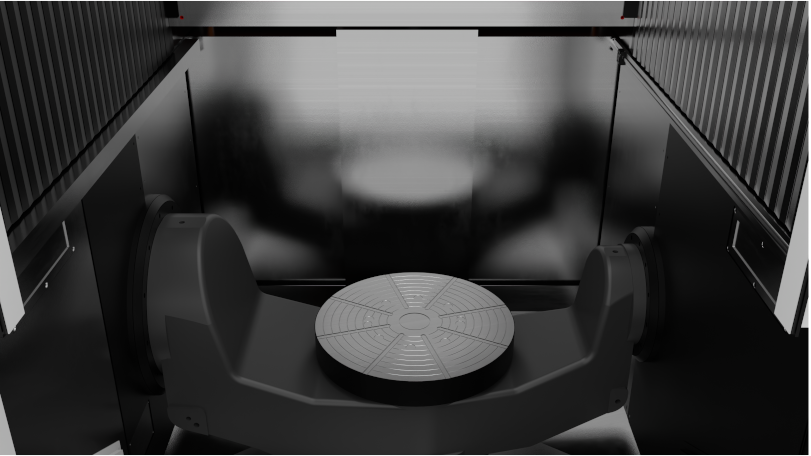 Станок оснащен немецкой передовой технологией изготовления шпинделя, высокопрочной и высокомоментной зубчатой передачей наклонно-поворотного стола по осям - A/C. Передача по оси A более жесткая, а сервосистема двигателя имеет высокую стабильность. На оси C используется прямой привод двигателя с крутящим моментом, обеспечивающий лучший динамический отклик и точность вращения.