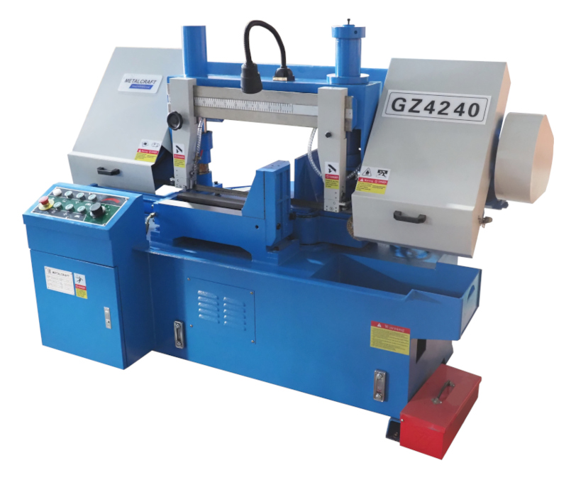 Станок GZ4240 используется для распила профилей, сплошных заготовок из инструментальных, нержавеющих сталей, чугуна, цветных металлов и других материалов. Область применения: средне- и крупносерийное производство различных отраслей. Пиление на станке GZ4240 осуществляется в полуавтоматическом режиме: резка производится в автоматическом режиме, а зажим заготовки выполняется гидравлическим зажимом. Конструктивной особенностью данной модели является поворотная пильная рама с регулировкой в диапазоне 0 - 60°. Движение пильной рамы и соответственно подача ленточного полотна осуществляется гидравлическим цилиндром. Скорость вращения полотна настраивается в широком диапазоне (27, 45, 69 м/мин), что позволяет максимально эффективно использовать оборудование в соответствии с профилем и обрабатываемым материалом.