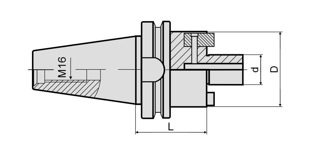 Фрезерный патрон BT40-FMB27-160 (MAS 403, JIS B 6339) предназначен для фиксации торцевой насадной фрезы с диаметром посадочного отверстия 27 мм, используется во фрезерных станках с ЧПУ, обрабатывающих центрах. Установка фрезы в оправку производится затяжным винтом. Крепление патрона в шпинделе производится при помощи штревельного болта M16, который не входит в комплект поставки и приобретается дополнительно. Вылет патрона от шпинделя станка составляет 160 мм.