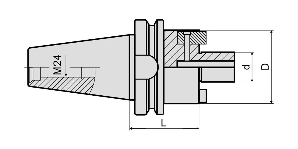 Фрезерный патрон BT50-FMB32-200-OM (MAS 403, JIS B 6339) предназначен для фиксации торцевой насадной фрезы с диаметром посадочного отверстия 32 мм, используется во фрезерных станках с ЧПУ, обрабатывающих центрах. Установка фрезы в оправку производится затяжным винтом. Крепление патрона в шпинделе производится при помощи штревельного болта M24, который не входит в комплект поставки и приобретается дополнительно. Вылет патрона от шпинделя станка составляет 200 мм. Патроны изготовлены из конструкционной стали 40Cr.