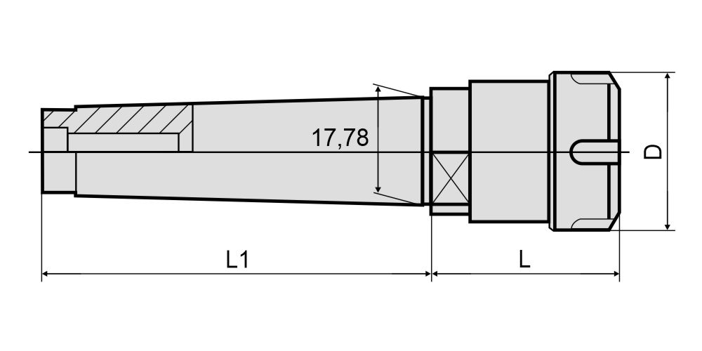 Фрезерный патрон MTB2-ER32-075 (ISO 296, DIN 228) предназначен для фиксации режущего инструмента с цилиндрическим хвостовиком и используется во фрезерных станках. Установка режущего инструмента в корпус патрона осуществляется при помощи зажимной цанги ER32 (DIN 6499) и гайки типа UM. В зависимости от размера посадочного отверстия цанги в патрон устанавливается сверло с диаметром хвостовика от 2 до 20 мм. Вылет патрона от шпинделя станка составляет 75 мм.