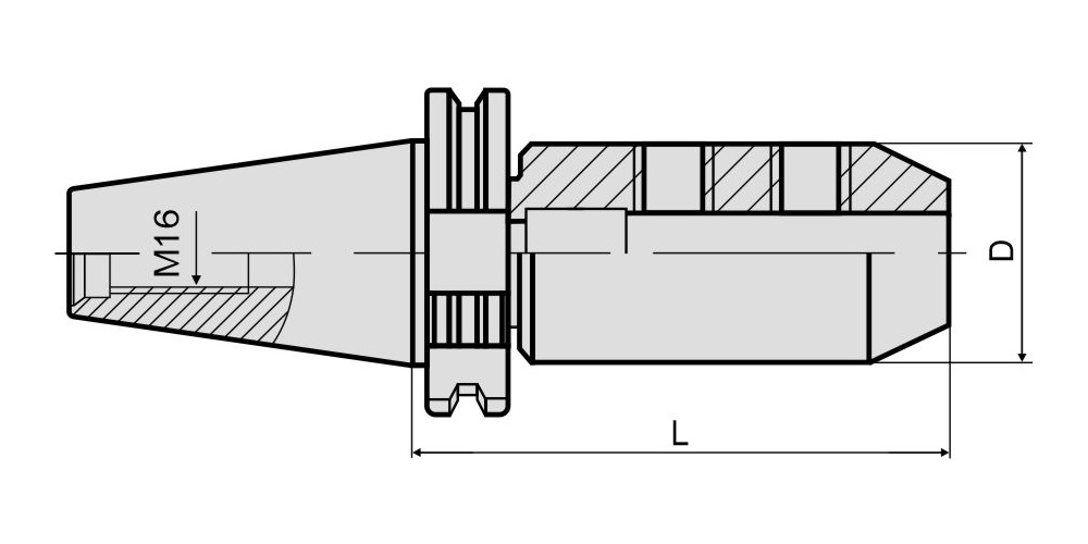 Патрон SK40-SLN40-120 предназначен для фиксации режущего инструмента с цилиндрическим хвостовиком Weldon диаметром 40 мм, используется сверлильных, фрезерных станках с ЧПУ и обрабатывающих центрах. Фиксация хвостовика SK40 (DIN 69871, ISO 7388/1) в шпинделе производится при помощи штревельного болта M16, который не входит в комплект поставки и приобретается дополнительно. Тип подачи СОЖ: АD (через центральное отверстие). Вылет патрона от шпинделя станка составляет 120 мм.