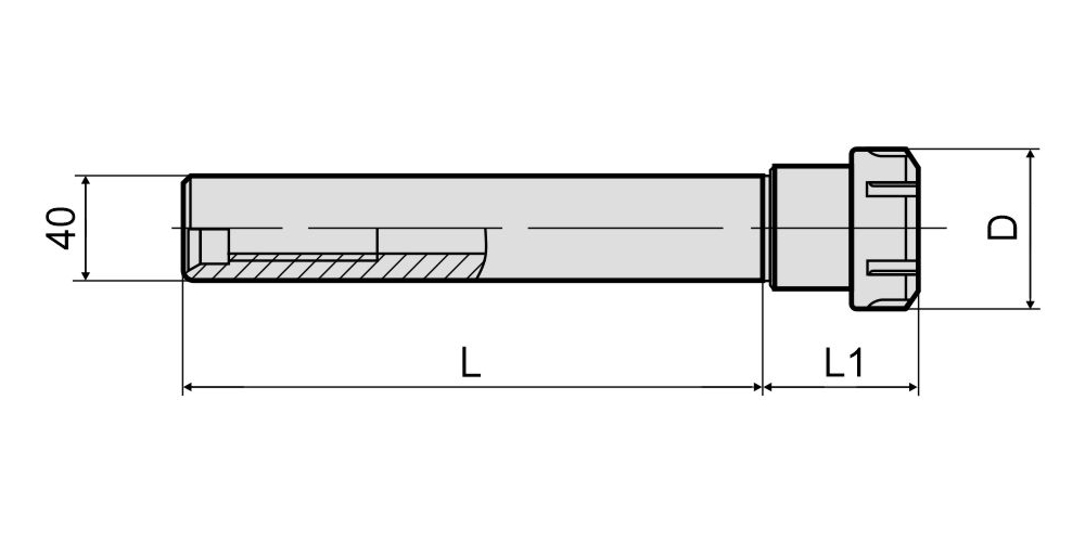Фрезерный патрон C40-ER32-150 (DIN 6535 HA / ISO 3338) используется в условиях большого вылета инструмента или ограниченного доступа к зоне резания. Цилиндрический хвостовик оправки фиксируется в цанговом зажиме большего размера или патроне Weldon (при наличии специальной лыски на хвостовике). Установка режущего инструмента в корпус патрона осуществляется при помощи зажимной цанги ER32 (DIN 6499) и гайки типа UM. В зависимости от размера отверстия цанги в патрон устанавливается инструмент с цилиндрическим хвостовиком диаметром от 2 до 20 мм. Длина хвостовика патрона составляет 150 мм.