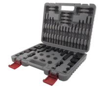 Набор прижимов обеспечивает надежную фиксацию заготовок и деталей различной формы на рабочем столе с Т-образными пазами. Прижимы универсальны и применяются при металлообработке на различных станках (фрезерные, сверлильные, обрабатывающие центры и т.д). Наборы содержат все необходимые элементы для крепления заготовки и отличаются размерами гаек, шпилек. В зависимости от модели в комплект поставки входит кейс или подставка-органайзер, предназначенные для хранения оснастки непосредственно на рабочем месте. В нашем каталоге представлены наборы прижимов для установки в пазы 10...36 мм с резьбой M8...M30.