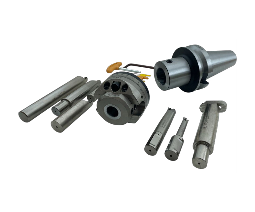 Расточная система BT50-NBH2084X (набор) предназначена для чистового растачивания отверстий диаметром 8-320 мм, применяется на станках фрезерной, сверлильной и расточной группы (включая оборудование с ЧПУ). Набор состоит из фрезерного патрона с хвостовиком BT50, расточной головки NBH2084X, расточных державок и комплекта ключей. Державки надежно фиксируются в корпусе расточной головки при помощи шестигранного болта. Микрометрическая расточная головка NBH2084X снабжена регулировочным винтом со шкалой и позволяет перемещать режущий инструмент с шагом 0,005 мм, максимально точно (до 0.005-0.008 мм) устанавливать необходимый диаметр растачивания. Твердосплавные пластины, а также штревельный болт в комплект поставки не входят и приобретаются дополнительно.