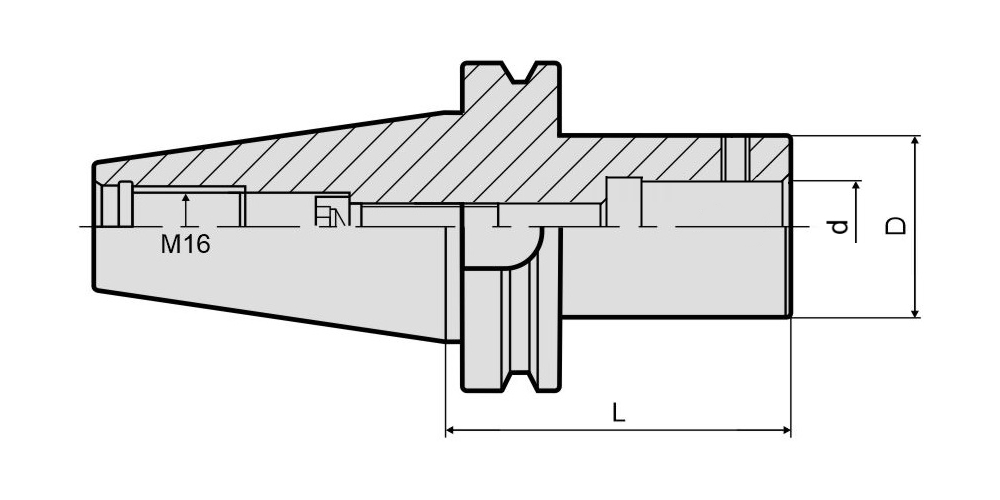 Патрон BT40-LBK5-75 (MAS 403, JIS B 6339) применяется для фиксации удлинителя LBK или расточной головки RBA с хвостовиком LBK5 (28 мм). Оправка обеспечивает надежную фиксацию инструмента в шпинделе станка и используется в сверлильных, фрезерных станках с ЧПУ, обрабатывающих центрах. Фиксация хвостовика инструмента в корпусе патрона осуществляется при помощи винта. Крепление оправки в шпинделе производится при помощи штревельного болта M16 (в комплект поставки поставки не входит). Тип подачи СОЖ: АD (через центральное отверстие). Вылет патрона от шпинделя станка составляет 75 мм.