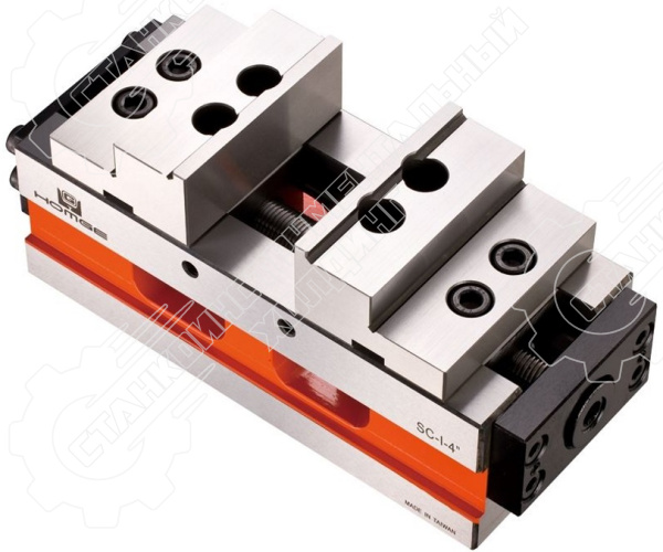 Тиски станочные Homge серии SC-I используются для быстрой фиксации заготовки в 5-осевых обрабатывающих центрах, станках с ЧПУ. Тиски SC-I имеют модульную конструкцию, состоящую из основания и двух прижимных блоков. Блоки приводятся в движение механическим самоцентрирующимся приводом. Таким образом, при фиксации заготовки выполняется ее автоматическое центрирование относительно базы тисков. Прижимные блоки могут устанавливаться в различных положениях, что позволяет подобрать оптимальный вариант фиксации в соответствии с формой и размерами заготовки. Тиски изготовлены из чугуна с шаровидным графитом (FCD 60) с закалкой направляющих до твердости 50 HRC, что в совокупности увеличивает точность фиксации и срок службы оснастки.