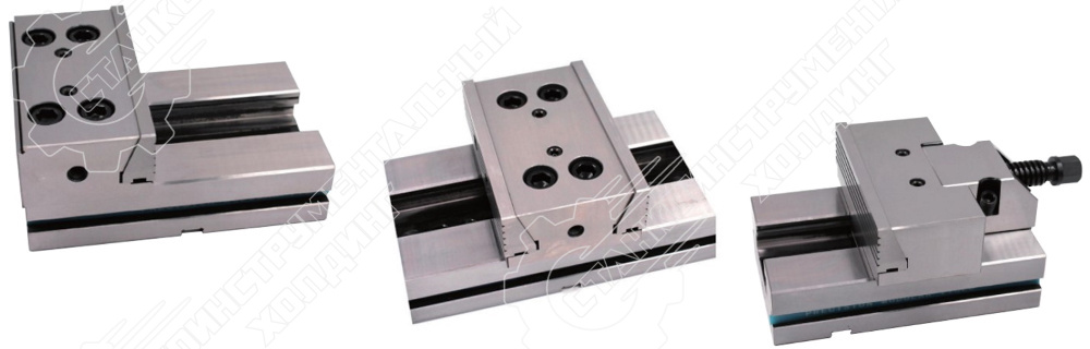 Конструкция тисков состоит из опорной рейки, подвижных упорных губок и зажимных элементов, что позволяет фиксировать несколько заготовок различных форм и размеров. Это делает многопозиционные тиски универсальными и подходящими для работы с разными материалами.