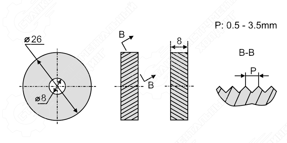 26 | 8 | 8 | 2.5 мм | 30° | Сетчатое | OLICNC |