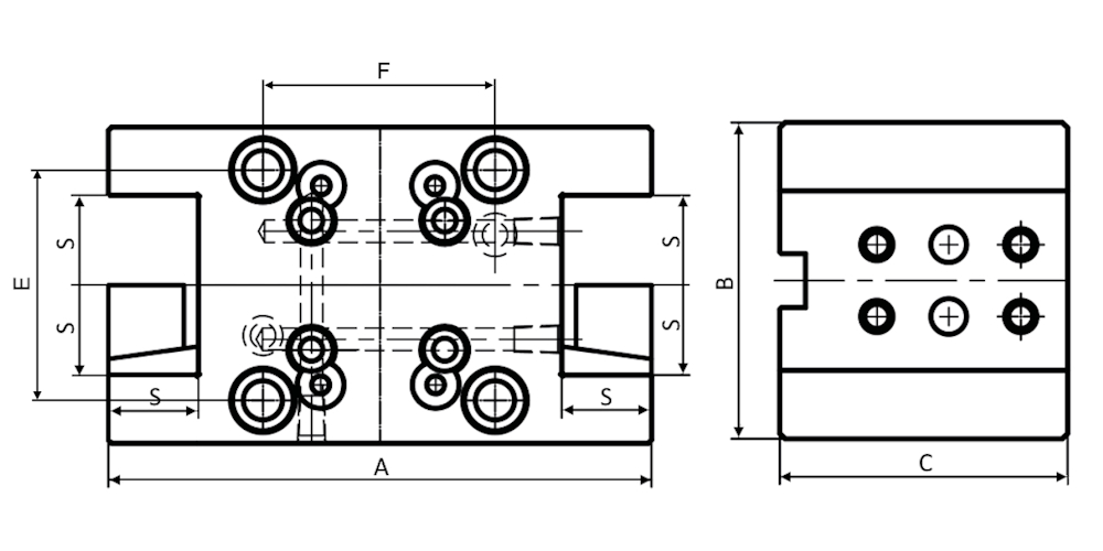 Стационарный инструментальный блок BMT40-SC20x55 используется для фиксации расточных державок с диаметром хвостовика 20 мм, межосевое расстояние 25 мм. Фиксация в револьверной головке станка осуществляется при помощи 4 болтов. Благодаря этому достигается высокая точность резания, повышается производительность и сокращается время на обработку изделий.
