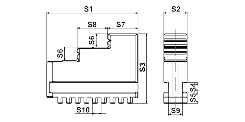 Кулачки K11-500-NJ-SET используются для высокоточной фиксации заготовки в токарном патроне K11 диаметром 20" (500 мм). Исполнение - ступенчатое. Поставляются комплектом из 3 кулачков.