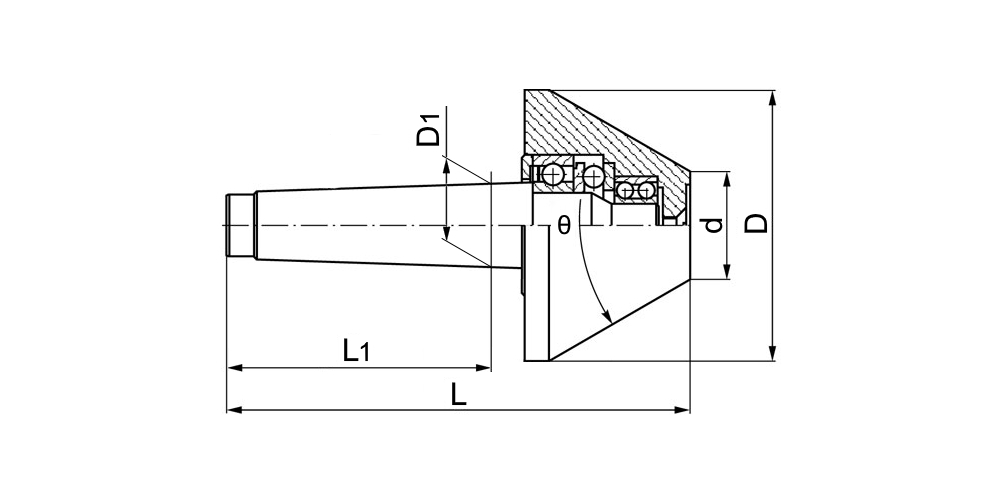 Грибковый вращающийся центр LC-BN-MT3-100 предназначен для фиксации и точного базирования заготовки с полыми торцевыми отверстиями (пустотелые валы, трубы) при высокоточной токарной обработке. Конструкция центра состоит из хвостовика в виде конуса Морзе №6 (MT3) и вращающегося упора в форме усеченного конуса с углом 75°. Вращение упора осуществляется при помощи шариковых подшипников, расположенных в герметичном корпусе. Токарный центр LC-BN-MT3-100 изготовлен из закаленной легированной стали.