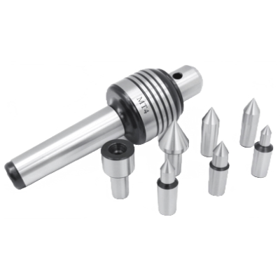 Вращающиеся центры серии HD43 и LC-ICP изготовлены из закаленной легированной стали, используются для фиксации и точного базирования заготовки при токарной на высокоскоростных режимах резания. Конструкция центра состоит из хвостовика в виде конуса Морзе и вращающегося сменного конусовидного упора. Вращение упора осуществляется при помощи шариковых подшипников, встроенных в корпус оснастки. Сменные вставки позволяют оперативно изменить конфигурацию токарного центра в соответствии с выполняемой операцией. В комплект поставки входят шесть вставок различного форм-фактора.