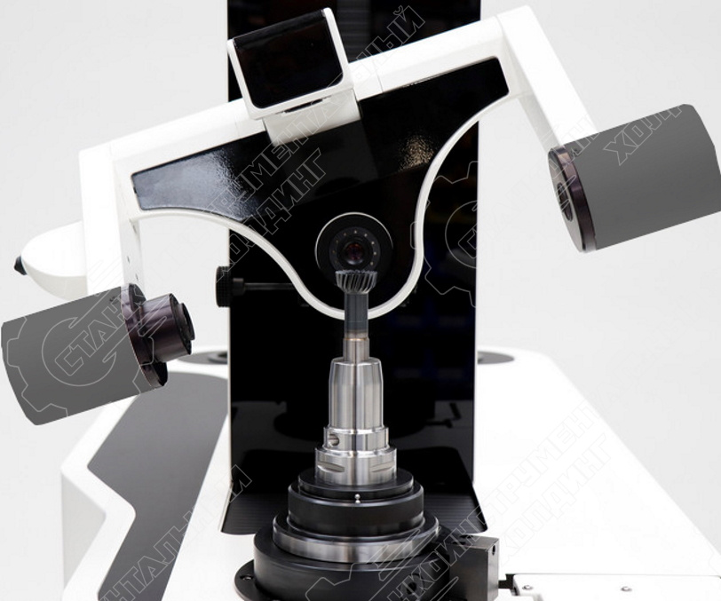 - Оптическая система: включает промышленную камеру высокого разрешения и высокоточный объектив, которые обеспечивают чёткое изображение с 45-кратным увеличением. Предусмотрена просвечивающая и поверхностная подсветка для точного измерения различных параметров инструмента.