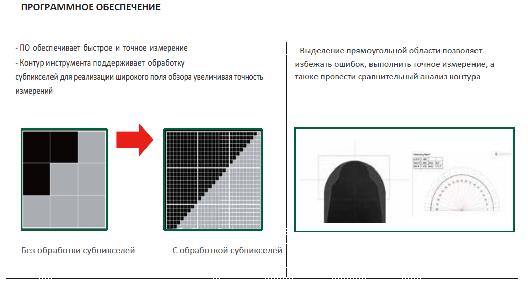 - Специализированное ПО: Программное обеспечение разработано для точного измерения контуров фрез, свёрл и нестандартного фасонного инструмента. Включает специальную библиотеку и программы для быстрого и точного измерения шлифовальных кругов различных форм.