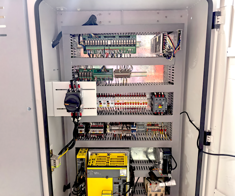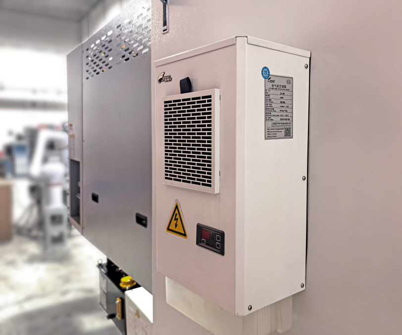 Назначение кондиционера электрошкафа станка — поддержание оптимальной температуры внутри шкафов управления. Система охлаждения предотвращает перегрев компонентов электроники, обеспечивая их стабильную работу. Принцип работы: кондиционер забирает горячий воздух изнутри электрошкафа, охлаждает его с помощью компрессора и хладагента, после чего подаёт обратно. Кондиционер оборудован фильтрами для очистки воздуха от пыли и влаги, что повышает его эффективность и дополнительно защищает компоненты электрошкафа станка. Преимущества использования кондиционера: стабильная работа электроники без сбоев из-за перегрева; увеличение срока службы электронных компонентов; снижение вероятности выхода из строя дорогостоящих модулей управления; возможность эксплуатации оборудования в условиях экстремальных (высоких) температур.