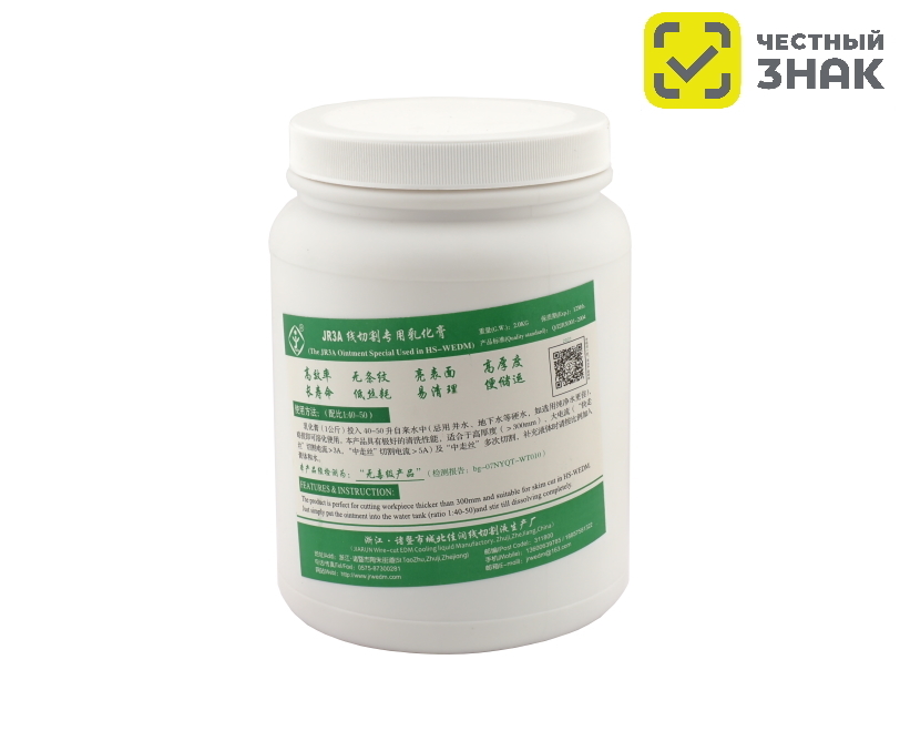 JR3A - концентрат СОЖ (мыльная эмульсия JR-3A), который используется в качестве смазочно-охлаждающей жидкости при электроэрозионной обработке заготовок толщиной до 500 мм при среднем токе в 5А.