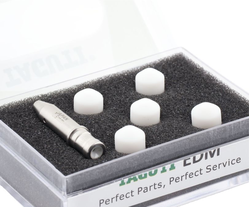 Фильера (направляющая) EDM-Z140A-0.3 используется для устранения биения электрода в точке сверления. Область применения: электроэрозионные сверлильные станки (супердрели). Диаметр отверстия 0,3 мм.